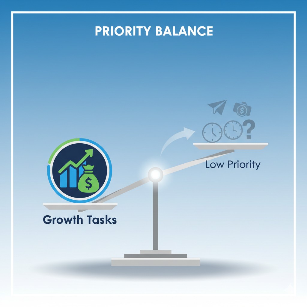 I resisted hiring a VA for ages, thought it was an expense I couldn't justify. Finally bit the bullet for just 5 hours a week. Handling my calendar and filtering emails. Suddenly, I had an extra hour of focused work time each day. The ROI was insane. When you do delegate, be crystal clear with instructions. What needs doing, how, by when, what does ‘done' look like? This touches on basic Human Resources (HR) skills – managing expectations, giving feedback. Invest time upfront in explaining properly – it saves tons of time later fixing mistakes. Delegation isn't just about offloading work – it's about buying back your most valuable asset: time to focus on growing your business.